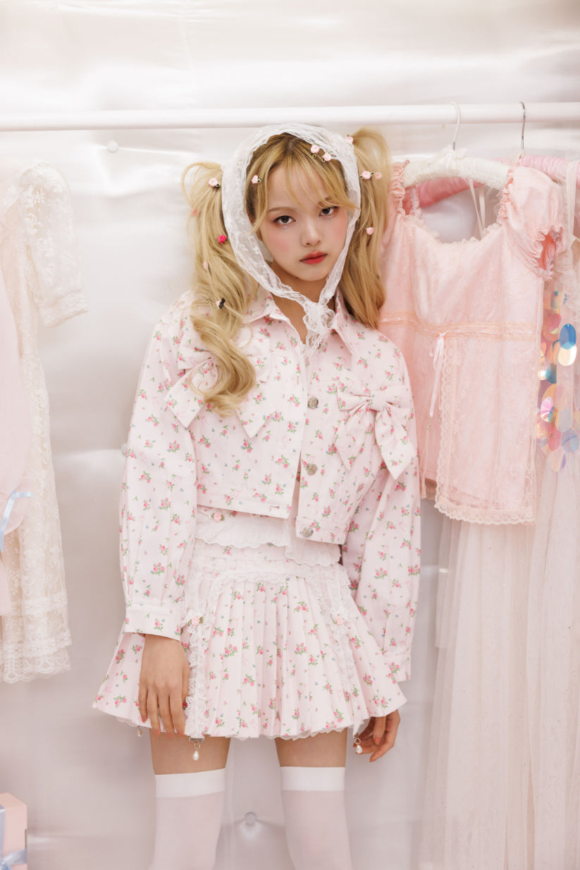 petit floral denim twin ribbon jacket